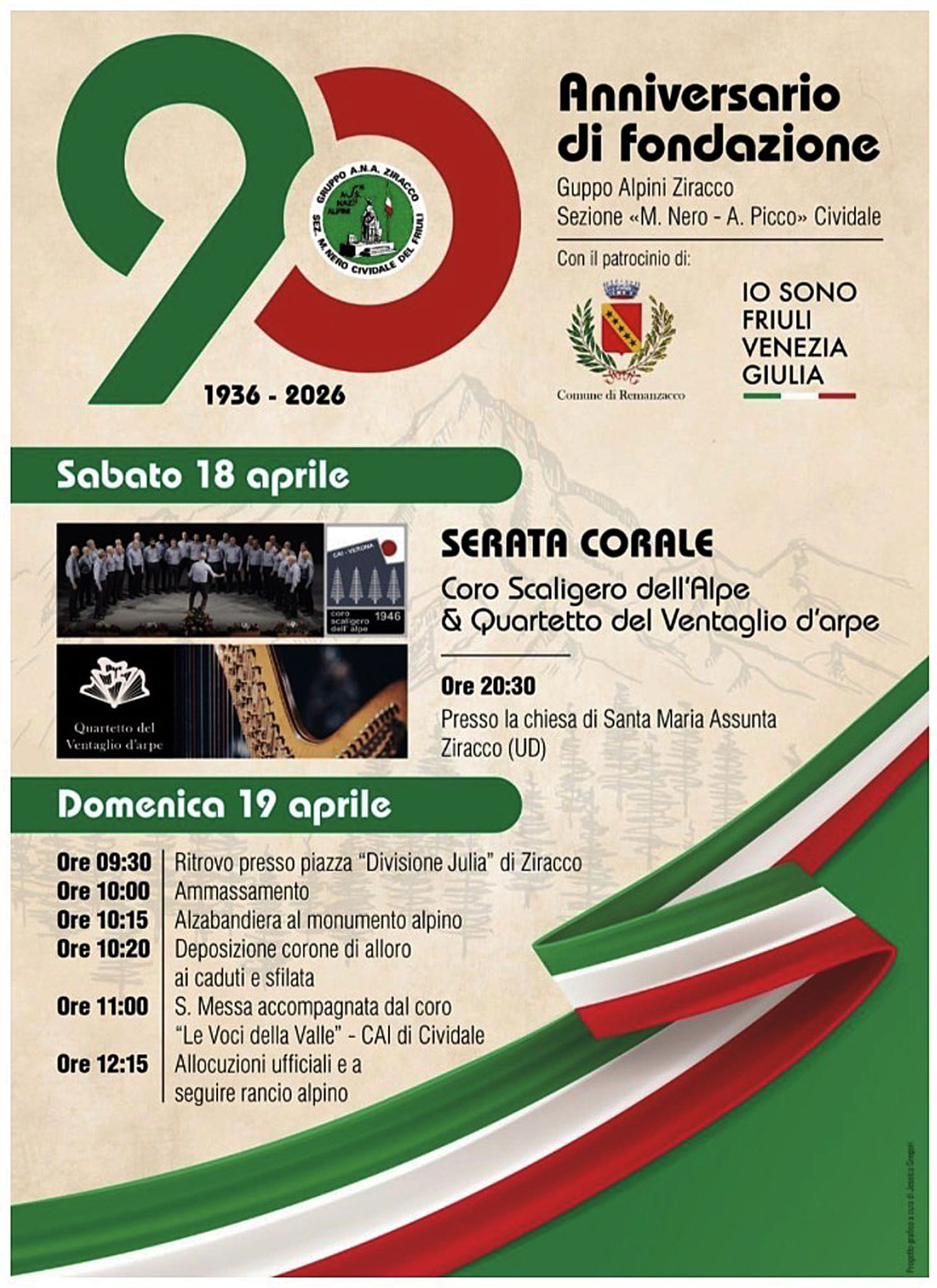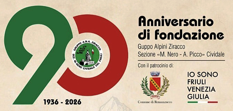 Celebrazioni in occasione del 90° Anniversario di fondazione del gruppo Alpini, nella piazza di Ziracco di Remanzacco, alle Ore 09:30.